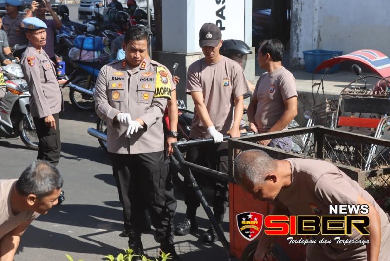 Polres Bondowoso Bersama Warga Melaksanakan Kegiatan Pembersihan Sampah di Pasar Induk