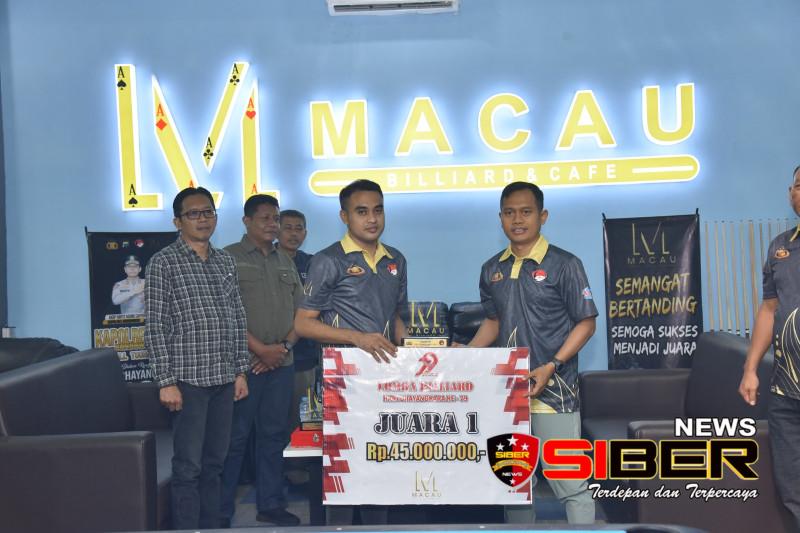 Dalam penutupan event bilyard kapolres cup kapolres memberikan piala dan uang pembinaan kepada para pemenang.