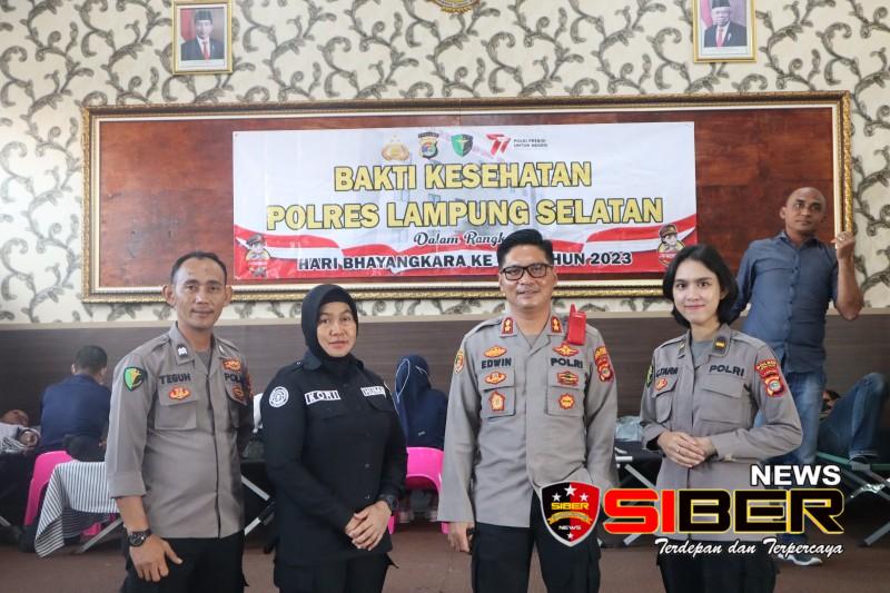 Kapolres Lampung Selatan AKBP Edwin menjelaskan” kegiatan bakti kesehatan dalam rangka hari bhayangkara ini diharapkan dapat bermanfaat untuk kebutuhan darah untuk masyarakat Lampung Selatan yang membutuhkan,” Kapolres Lampung Selatan AKBP Edwin