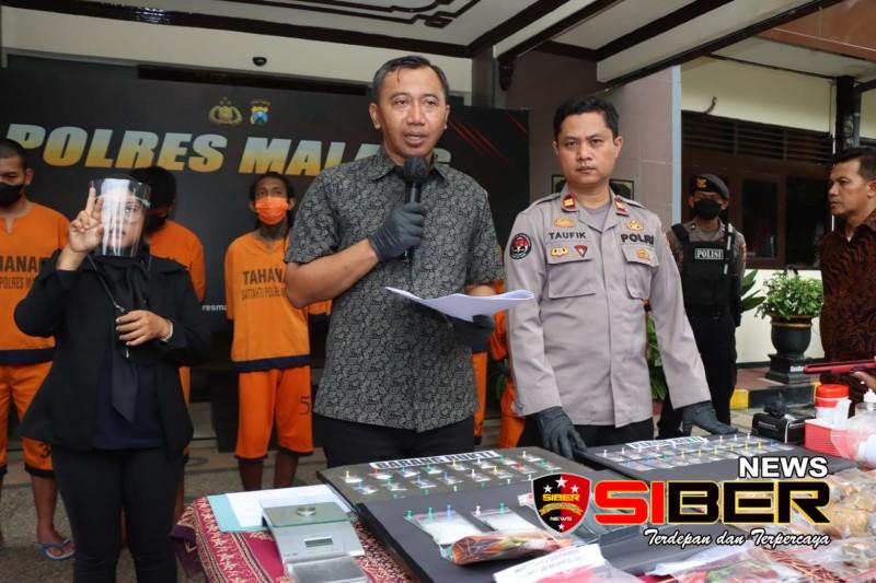Malang, SIBERNEWS.CO.ID _ Kepolisian Resor Malang, Polda Jawa Timur, melakukan konferensi pers terkait keberhasilan pengungkapan kasus narkotika sepanjang bulan Januari 2023.