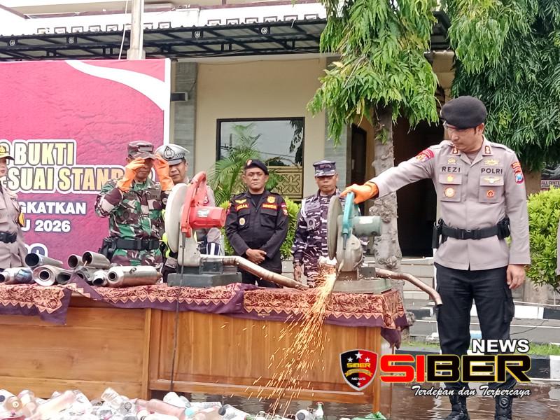 Pemusnahan miras tersebut dipusatkan di halaman Mapolres Situbondo, yang diawali oleh Kapolres Situbondo AKBP Rezi Darmawan dan Pj Sekda Kabupaten Situbondo Prio Handoko dan dilanjutkan oleh PJU Polres Situbondo, Sabtu (20/12/2025).