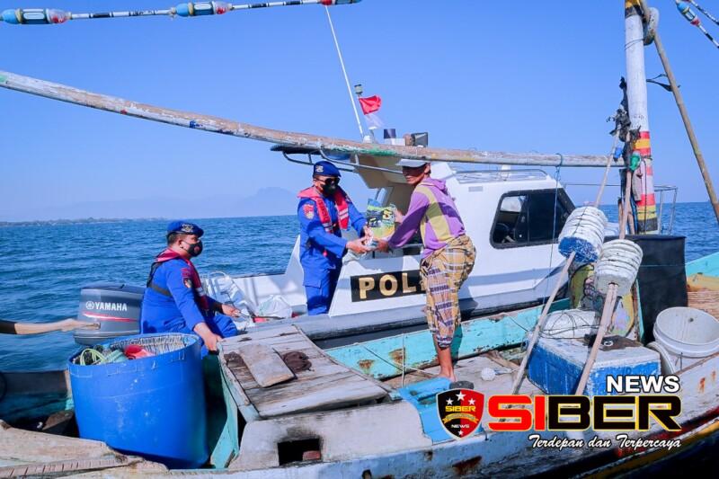 Dengan menggunakan Kapal Patroli, AKP H. Moh. Hasanudin, S.H. memimpin langsung pembagian paket bahan pokok kepada para nelayan yang sedang melaut dengan didampingi oleh Kasi Humas Iptu Achmad Sutrisno, SH dan anggota Patroli Satpolairud.