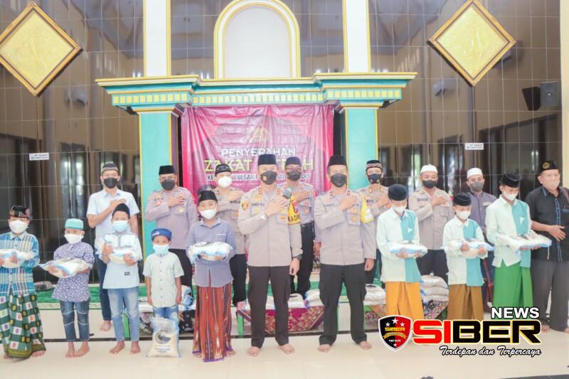 Secara simbolis Kapolres Situbondo AKBP Andi Sinjaya, S.H., S.I.K., M.H. menyerahkan zakat fitrah kepada perwakilan warga kurang mampu. Zakat fitrah sebanyak 2,5 ton beras itu dikemas menjadi 512 paket masing-masing per-paket berisi 5 kilogram.