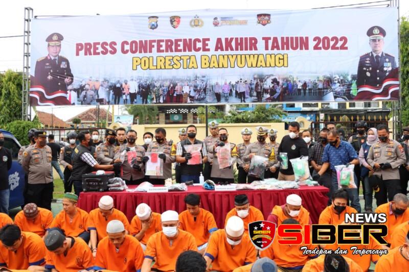 Banyuwangi,SIBERNEWS.COM_ Polresta Banyuwangi menggelar press release tahunan pada Sabtu (31/12/2022). Seluruh kasus dipaparkan langsung Kapolresta Banyuwangi, Kombespol Deddy Foury Millewa di dampingi PJU.