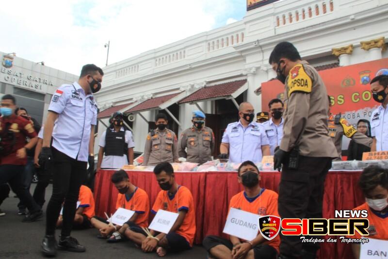 Surabaya, SIBERNEWS.CO.ID – H-2 Perayaan Tahun Baru 2022, Satresnarkoba Polrestabes Surabaya mengungkap 44,7 Kg Sabu, 31. 082 butir extasi dan serbuk extasi sebanyak 1 kg dari 8 orang tersangka di lapangan Utama Polrestabes Surabaya, Rabu (29/12/2021).