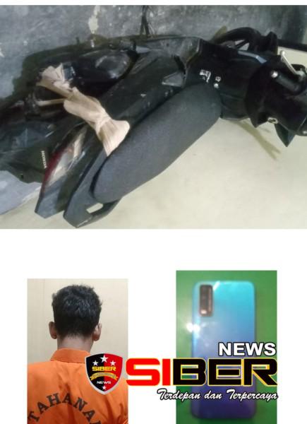 Kini, pelaku diamankan di Polsek Katibung dengan barang bukti 1 (satu) sepeda motor honda beat warna hitam dan 1 ( satu ) unit Hp android merk oppo warna biru. (hms/mudian)