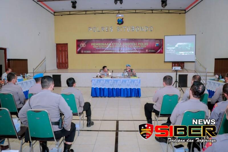 SITUBONDO, SIBERNEWS.CO.ID _ Bidang Profesi dan Pengamanan (Propam) Polda Jatim melaksanakan pembinaan etika profesi Polri dan sosialisasi Peraturan Kepolisian (Perpol) Nomor 7 Tahun 2022 tentang Kode Etik Profesi dan Komisi Kode Etik Polri di Gedung Bhayangkara Jananuraga Polres Situbondo, Selasa (20/9/2022)