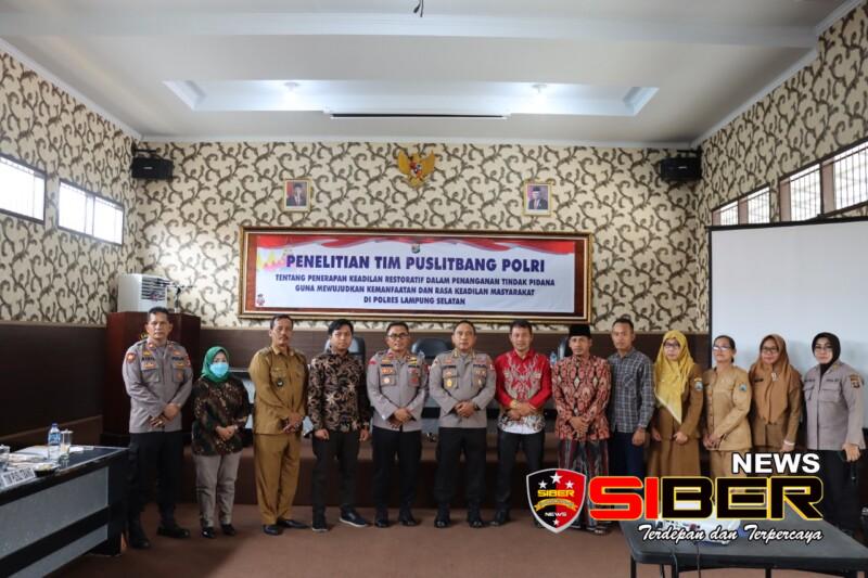 Lampung Selatan, SIBERNEWS.CO.ID _ Tim Puslitbang Polri kunjungi Polres Lampung Selatan dalam rangka penelitian penerapan keadilan restoratif dalam penanganan tindak pidana guna mewujudkan kemanfaatan dan rasa keadilan masyarakat. Senin. 24/10/2022 Pukul 09.00 Wib.