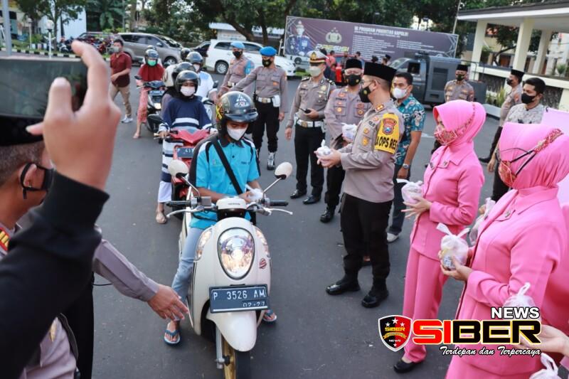 BONDOWOSO, SIBERNEWS.CO.ID – Keluarga besar Polres Bondowoso dan Bhayangkari menggelar bakti sosial bagi-bagi takjil dan makanan berbuka puasa.