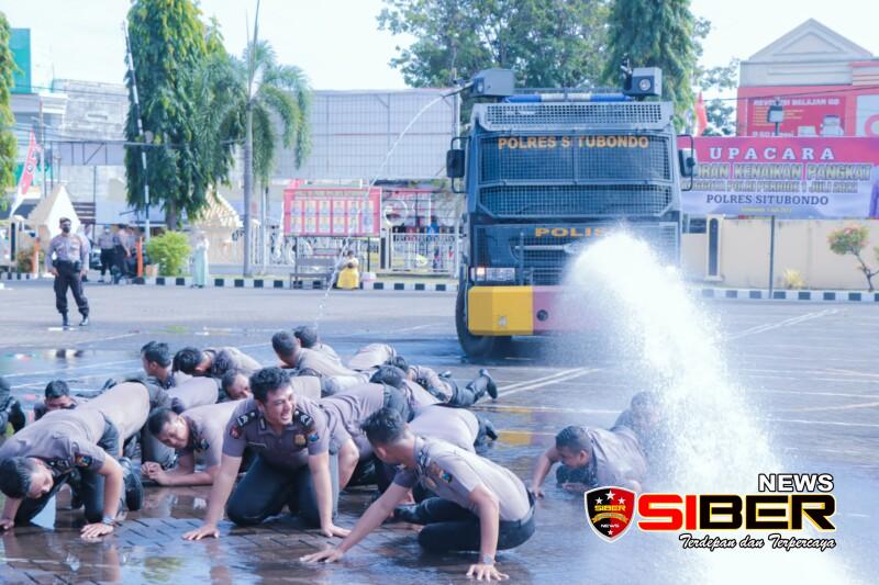 Rayakan HUT Bhayangkara Ke 76 Dan Kenaikan Pangkat, Andi Sinjaya Siram Anggota Pakai Water Canon