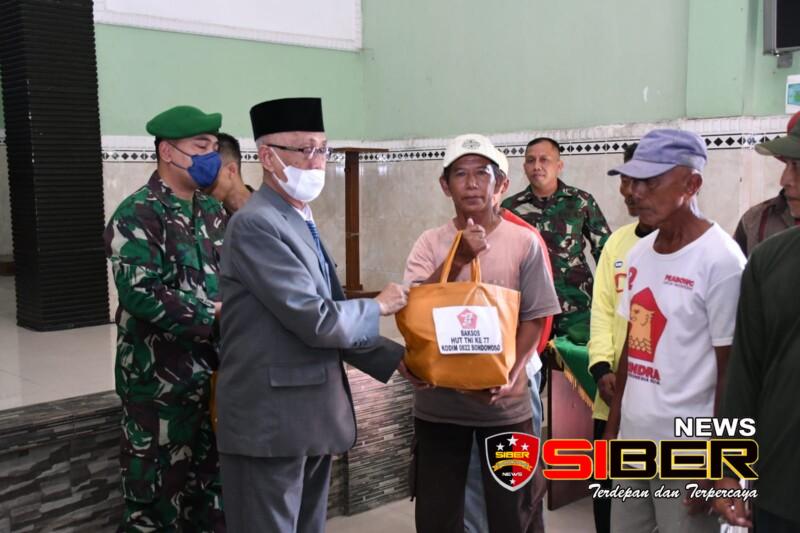 Bondowoso, SIBERNEWS.CO.ID _ Dalam rangka memperingati HUT TNI ke-77 tahun 2022, Kodim 0822 Bondowoso menggelar bakti sosial (baksos), Rabu (5/10/2022). Baksos dilakukan di Makodim 0822 dengan membagikan paket sembako untuk tukang becak, pemulung, dan juga petugas kebersihan sekitar Alun-alun Bondowoso.