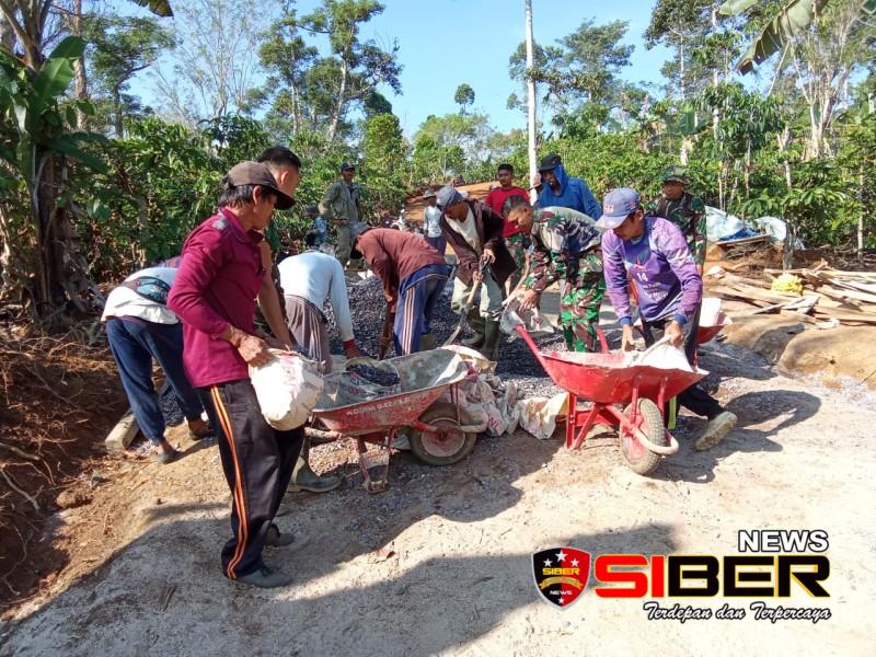 Sangat Kompak, TNI dan Masyarakat Buat Gorong-gorong di TMMD Kodim 0422/Lampung Barat.