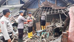 Tim SAR Ki 3 Yon B Pelopor dibawah komando AKP Nur Hasyim S.H, bersama dengan masyarakat dan tim relawan lainnya, melaksanakan giat pembersihan sisa bangunan rumah warga yang terdampak banjir.