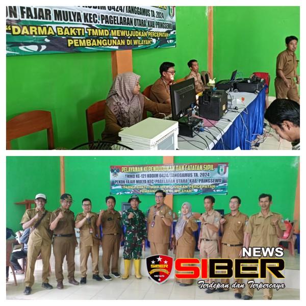 Pringsewu, SIBERNEWS.CO.ID – Satuan tugas TNI Manunggal Membangun Desa (TMMD) ke 121 Kodim 0424/Tanggamus bekerjasama dengan Dinas Kepedudukan serta Catatan Sipil Kab. Prngsewu menggelar Pelayanan Administrasi Kependudukan gratis kepada warga di Pekon Fajar Mulya Kec. Pagelaran Utara Kab. Pringsewu. Senin (29/7/24).