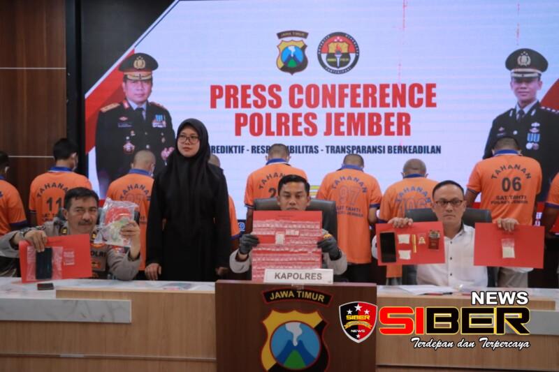 Jember, SIBERNEWS.CO.ID _ Satreskoba Polres Jember,Polda Jatim dalam satu minggu terakhir berhasil menggulung 10 tersangka pengedar sabu dan obat keras berbahaya dengan nilai mencapai puluhan juta rupiah.