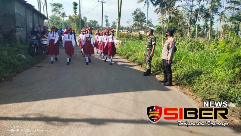 Bondowoso, SIBERNEWS.CO.ID _ Babinsa Pos Koramil 0822/06 Jambesari Sertu Sayuti bersama Bhabinkamtibmas Polsek Jambesari melaksanakan pengamanan lomba gerak jalan yang melibatkan Sekolah Dasar, kegiatan ini dalam rangka menyambut HUT kemerdekaan Republik Indonesa Ke -77 yang berlangsung sejauh 5 km menyusuri jalan Kecamatan Jambesari Kabupaten Bondowoso, Selasa (16/08/2022).