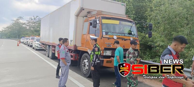 “Sekira pukul 13.30 WIB, petugas berhasil mengamankan kendaraan truk fuso tronton box warna orange Nopol A 9152 ZA,” sambung Kasat PJR.