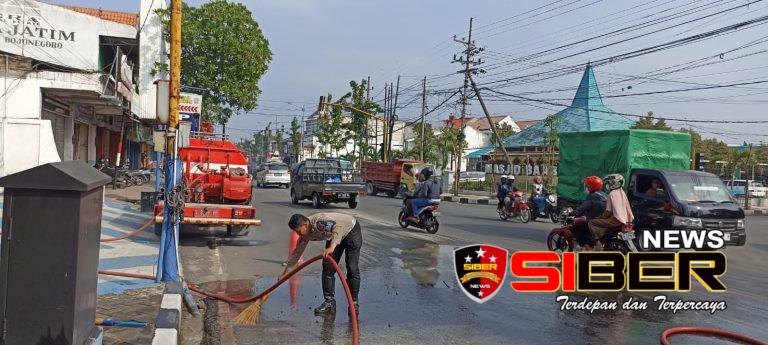 Sisa Material Cor Bikin Rawan Laka, Ini Yang Dilakukan Sat Lantas dan Damkar Bojonegoro
