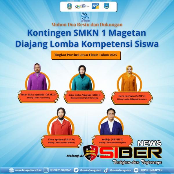 Dalam Lomba Kompetensi (LKS) kali ini Kepala SMKN 1 Magetan Nurickwan mengatakan, sekolahnya mengirimkan lima cabang kompetensi ke Malang.Diantaranya Intan Ekka Agustina (XI Ak. 2) bidang lomba accounting, Anissa Widyaningrum (XI BD 1) bidang lomba digital marketing, Hera Fazriana (XI MP2) bidang lomba Billingual secretary, Citra Aprilana (XII ULW) bidang lomba Citra Tourism dan Yedhija(XII PHT 2) bidang lomba hotel reception.
