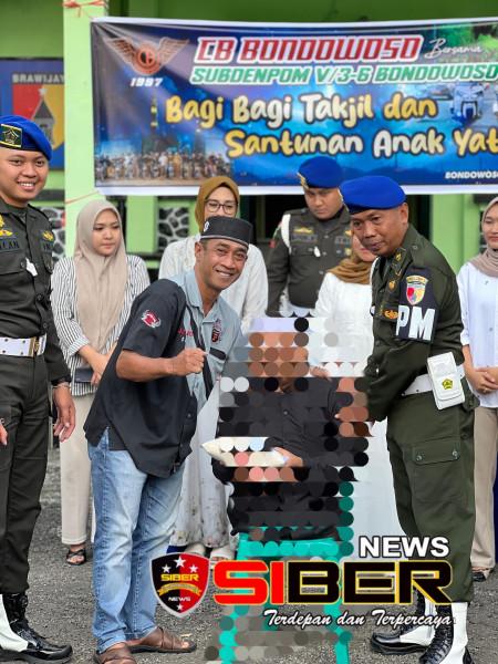 Bondowoso,SIBERNEWS.CO.ID _ Ramadhan memberikan spirit berbeda kepada sejumlah kalangan. Termasuk dalam beribadah murni maupun seperti kepedulian sosial dan sejenisnya,Saat bulan ramadhan,Kegiatan tahunan kolaborasi antara Club CB Bondowoso dan Subdenpom V/3-6 Bondowoso, bagi-bagi takjil dan santunan anak yatim yg bertempat di depan kantor Subdenpom V/3-6 Bondowoso yg di selenggarakan pada tanggal 13 Maret 2026.