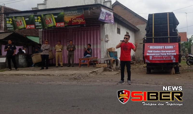 Dalam orasinya Giarto menyampaikan” hari ini kami melakukan aksi penyampaian suara hati masyarakat demi sebuah perbaikan dan kemajuan pemdes karangsari Selama di pimpin oleh seorang PAW, maka sudah menjadi tugasnya dalam menjaga amanah masyarakat.