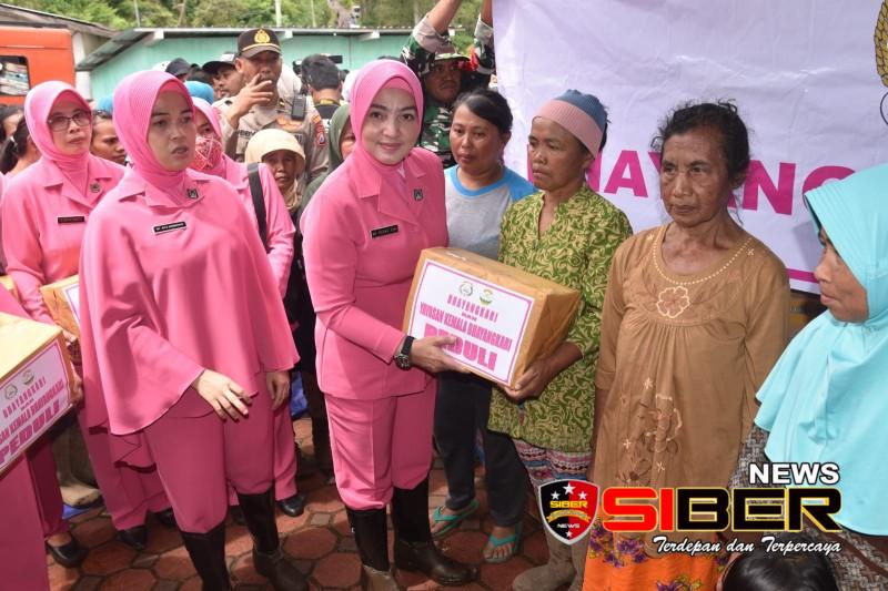 Bukan hanya unsur Forkopimda Jawa Timur saja, Ketua Pengurus Daerah Bhayangkari Jawa Timur, Ny. Yesika Toni Harmanto juga turut mengunjungi lokasi bencana di Kecamatan Sempol Kab Bondowoso ini.