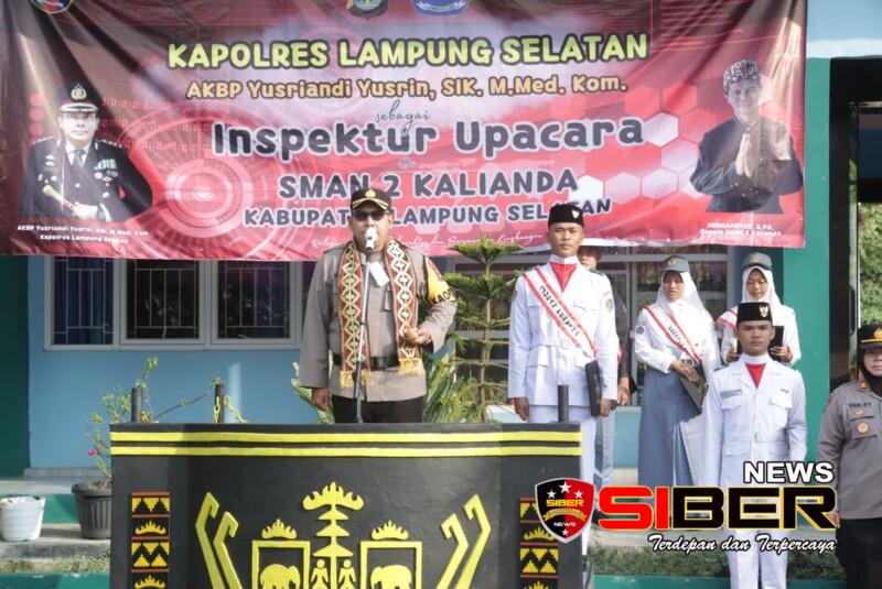 AKBP Yusrian Yusrin langsung menjadi pembina upacara di SMAN 2 Kalianda dan membacakan amanat Kapolda Lampung menjelaskan bawah pelaksanaan upacara bendera yang dilaksanakan setiap hari senin, adalah proses penanaman sikap kedisiplinan, penghormatan kepada arwah pahlawan serta dapat dijadikan untuk membentuk diri dalam bersikap sebagai seorang pelajar berkarakter.