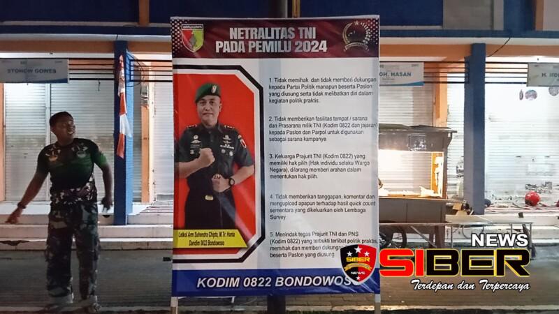 Banner NETRALITAS TNI dipasang di depan Satuan Kodim 0822 Bondowoso dan jajaran agar dapat dilihat dan dibaca oleh warga masyarakat, dan dalam pemasangan banner sebagai wujud untuk menghilangkan keraguan masyarakat terhadap Netralitas TNI.