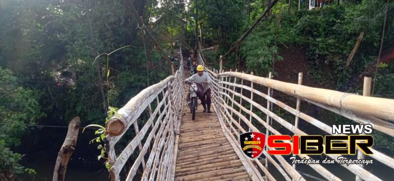 ” Kalau jembatan yang lama sudah selesai pembangunan di sebelah timur sungai, dan jembatan darurat nya ada di sebelah selatan, karna memang hany mengunakan tambang seling dan bambu pada saat di lewati terasa seperti goyang-goyang,” ujar ST