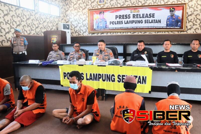 Dalam konferensi persnya Kapolres Lampung Selatan AKBP Yusriandi Yusrin mengungkapkan pihaknya telah melakukan penangkapan terhadap pelaku dan M alias E (40) warga Desa Bandar Agung Kecamatan Sribawono Kab. Lamtim dan DR (15) warga Desa Trans Tanjungan Kecamatan Katibung Kab. Lamsel Kamis, 31/08/ 2023 pukul 01.00 Wib dini hari,” ujar Kapolres Lampung Selatan AKBP. Yusriandi Yusrin.
