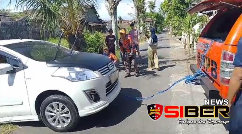 Karena kesulitan Tim Rescue Damkar kabupeten bondowoso regu 2 langsung mendatangkan mobil Ford Ranger milik BPBD untuk mengevakuasi mobil tersebut