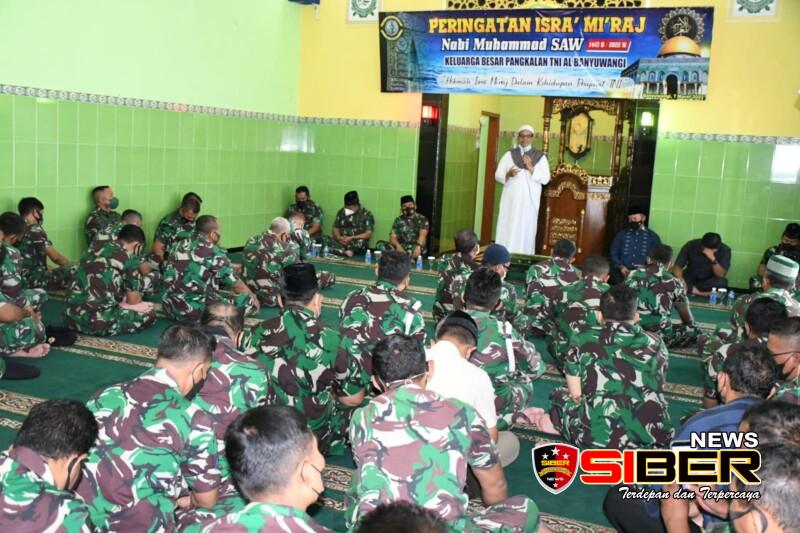 Banyuwangi, SIBERNEWS.CO.ID – Dalam rangka melaksanakan Perintah Harian Kasal Laksamana TNI Yudo Margono dalam meningkatkan ketaqwaan kepada Tuhan Yang Maha Esa sebagai landasan dalam mengabdikan diri sebagai prajurit Jalasena yang memegang teguh nilai Sapta Marga, Sumpah Prajurit , Delapan Wajib TNI, dan Trisila TNI AL, Pangkalan TNI AL (Lanal) Banyuwangi selenggarakan Peringatan Isra ‘Mi’raj Nabi Muhammad S.A.W 1443 H / 2022 M dengan tema “Hikmah Isro’ Mi’raj Dalam Kehidupan Prajurit TNI” di masjid AL Iman, Mako Lanal Banyuwangi, Jl. Raya Situbondo nomor 54, Desa Ketapang, Kec. Kalipuro, Kab. Banyuwangi, Jawa Timur. Senin(7/3/2022).
