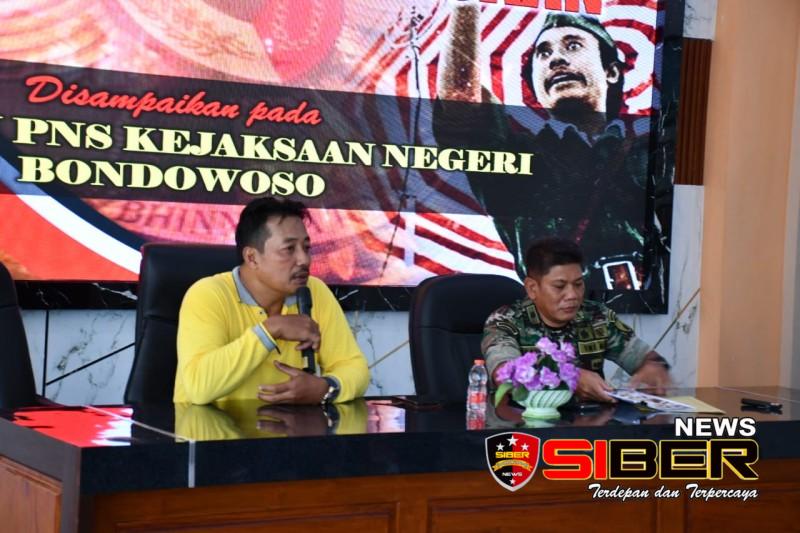 BONDOWOSO, SIBERNEWS.CO.ID – Sebanyak 21 calon Pegawai Negeri Sipil Kejari Bondowoso menerima pembekalan Wasbang (Wawasan Kebangsaan) yang secara langsung disampaikan oleh Kepala Staf Kodim 0822 Bondowoso, Mayor Inf Tanuri, dengan didampingi Kajari Bondowoso Dzakiyul Fikri, SH, MH., yang dilangsungkan di Aula Kejari Bondowoso Jl. A. Yani Kec/Kab. Bondowoso, Jum’at (31/5/2024).