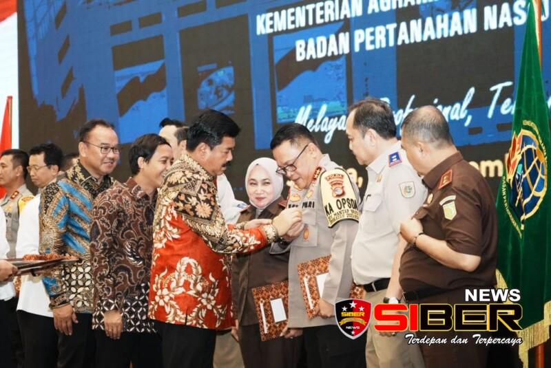 Penghargaan itu diberikan Kementerian Agraria Hadi Tjahjanto kepada Kapolda Lampung Inspektur Jenderal (Irjen) Helmy Santika di Hotel Grand Mercure, Jakarta, Rabu (8/11/2023).