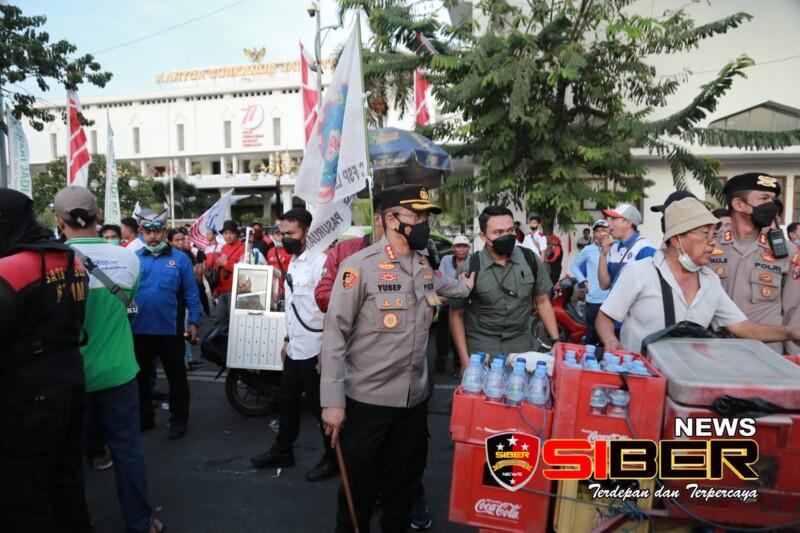 Dalam kesempatan tersebut, Kapolrestabes Surabaya juga memborong minuman para pedagang kaki lima dan dibagikan kepada peserta demo.