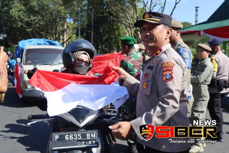 Dalam kegaiatan tersebut Wakapolres Bondowoso Kompol. Joes Indra Lana Wira, SH juga ikut hadir dalam pembagian 1000 bendera kepada masyarakat yang melintasi RBA Alun-alun Bondowoso.