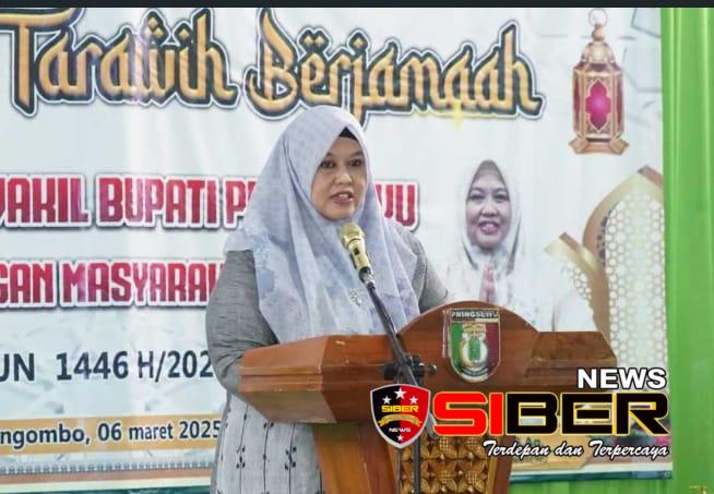 akil Bupati Pringsewu, Hj. Umi Laila, S.Ag., menghadiri acara Buka Puasa Bersama dan Sholat Tarawih berjamaah bersama masyarakat di Masjid Mufidurrohman, Pringsewu Timur, Kamis, (06/03/2025).