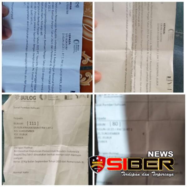 Bondowoso, SIBERNEWS.CO.ID _ Pemerintah melalui BANPANG Badan Pangan Nasional Republik Indonesia menyalurkan bantuan pangan berupa beras 10 KG kepada warga kurang mampu,tapi miris terjadi pada warga Desa Sukojember Kec.Jelbuk Kabupaten Jember,kenapa tidak bantuan pangan tersebut tidak sampai pada penerima manfaat berupa beras, Ervin Cahyono Warga desa dusun krajan barat Rt 03/ Rw 07 Kec.Jelbuk Jember dirinya mendapat undangan Dari PT Yasa Artha Trimanunggal bulan november 2023.untuk menghadiri Pengambilan beras Di balai desa setempat,sesuai dengan isi surat undangan tersebut dengan persyaratan membawa KTP Asli Dan KK,sesuai dengan nomer undangan : 310707050141 namun saat mendatangi balai desa Sukojember tapi mirisnya persediaan beras sudah habis. Senin 20/11/2023.