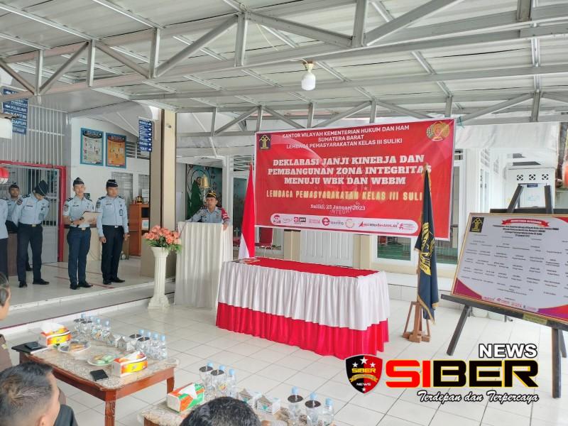 Lima Puluh Kota, SIBERNEWS.COI.D – Lembaga Pemasyarakatan (Lapas) Kelas III Suliki, Kabupaten Lima Pulih Kota Menggelar acara deklarasi Kinerja dan penandatanganan komitmen bersama untuk mewujudkan Wilayah bebas dari korupsi (WBK) atau Wilayah Birokrasi dan Bersih Melayan (WBBM) di Tahun 2023 ini. Acara itu berlangsung di Lapas setempat, Rabu, (25/1/2023).